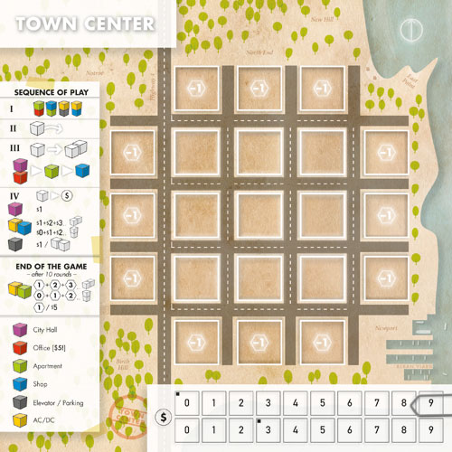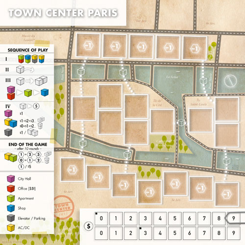 town center (2012-2013) board game graphic design for alban viard contains art created by fanny dalle aste |